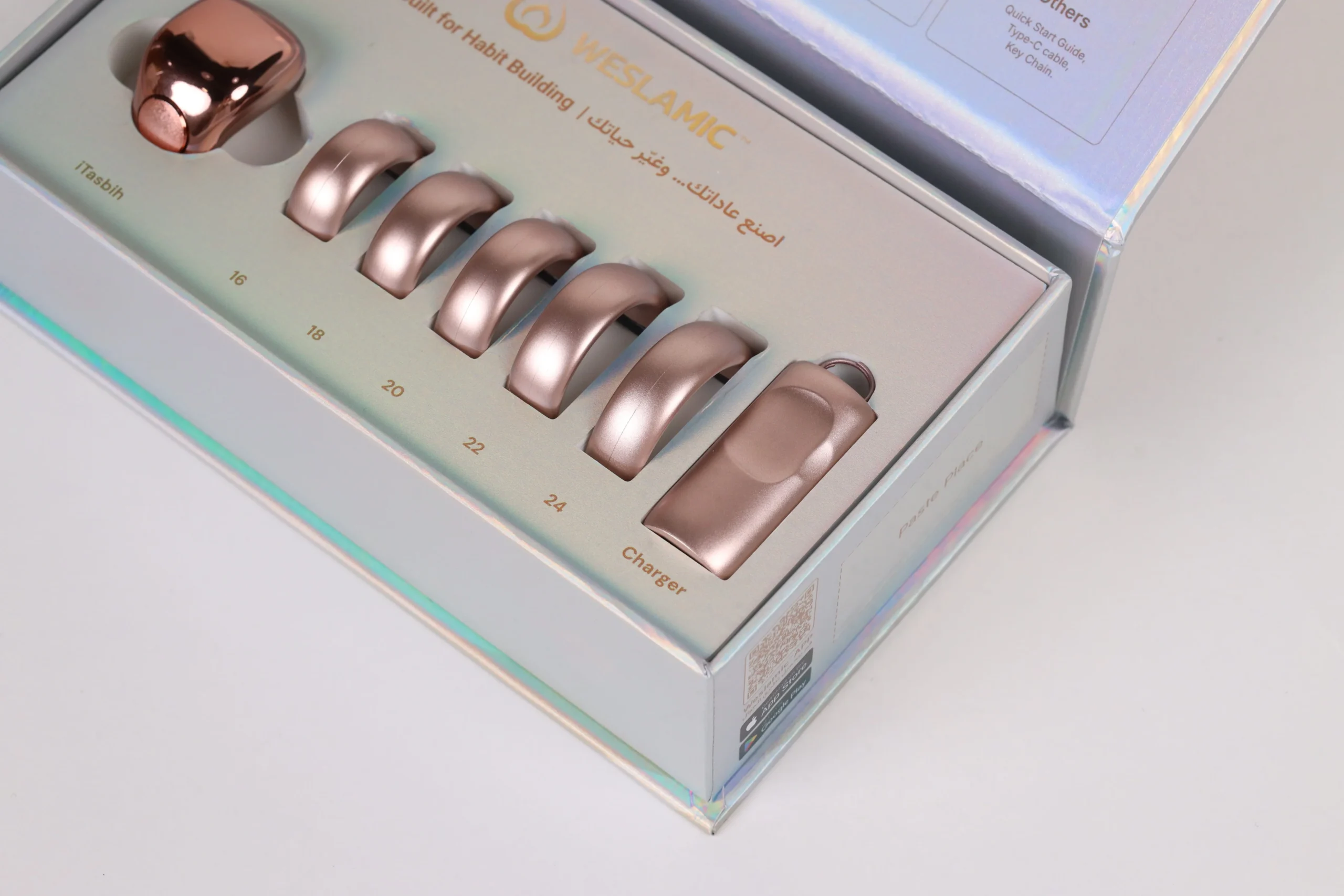 Designed for believers who move. The WESLAMIC iTasbih Relation comes with a 300 mAh charging case offering 5+ recharges and up to 33 days of battery life. Whether at home, at work, or on the road, your Smart Dhikr Ring stays powered—so your zikr never stops.